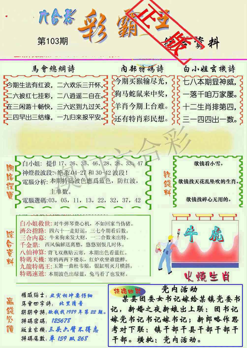 103期:发财大哥★一季中特★独家发表